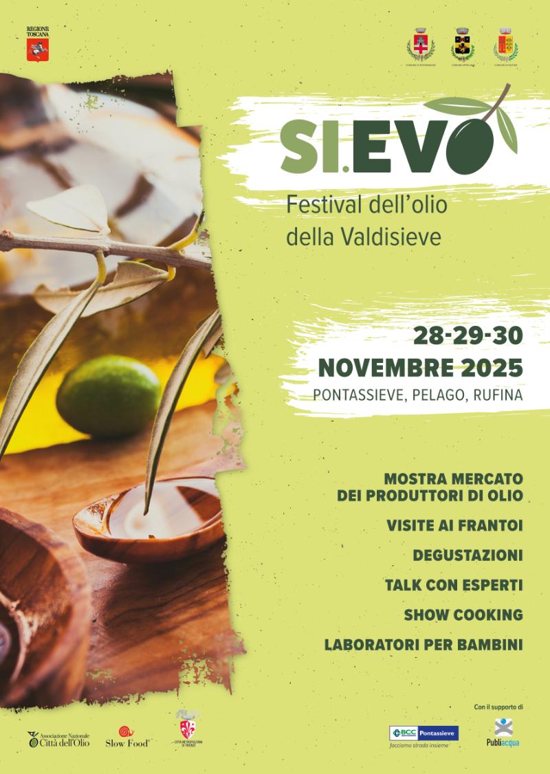 Prende il via la prima edizione di "SI.EVO", il Festival dell'olio della Valdisieve, una nuova e iniziativa nata dalla partnership strategica tra i Comuni di Pontassieve, Pelago e Rufina. L'evento, in programma dal 28 al 30 novembre, celebra e promuove l'eccellenza dell'olio extra vergine d'oliva locale, il vero "oro verde" del territorio.
